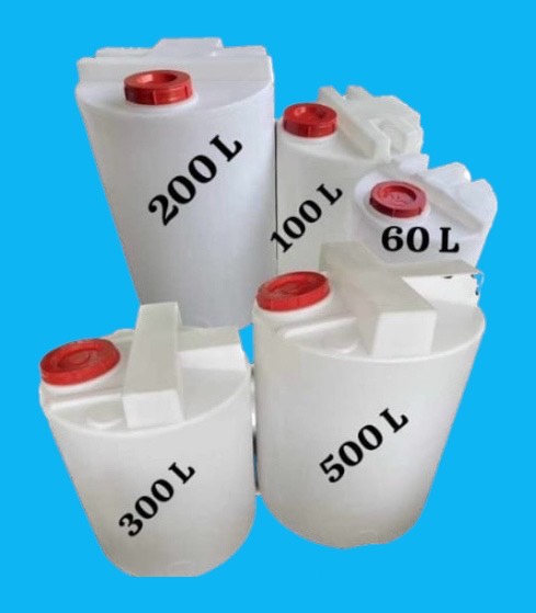 chemical tank (tangki bahan kimia) berbagai ukuran kapasitas (60–500 liter), lengkap dengan fitur level indikator: